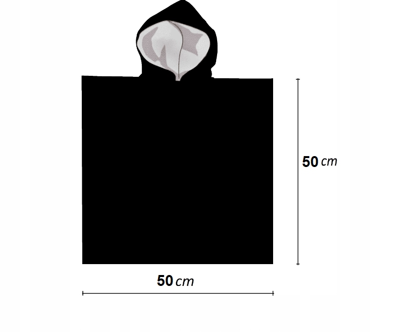 • Praktyczne wymiary: 50×100 cm (po rozłożeniu), długość od ramienia do pasa 50 cm, szerokość 50 cm